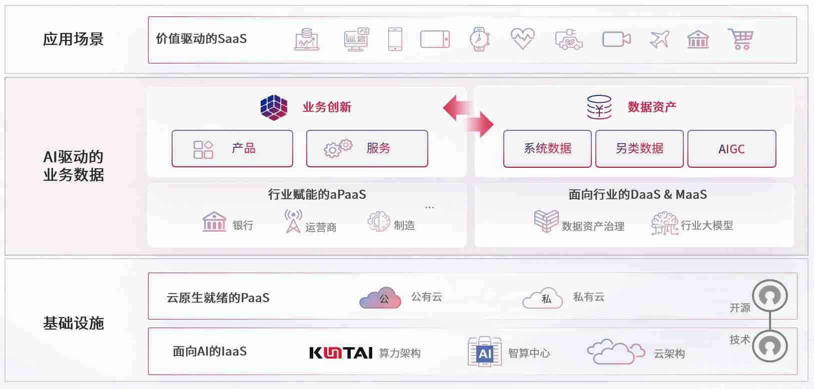 数字时代,,,,围绕企业数字化转型的关键要素,,GGPAY钱包数码开创性的提出数云融合战略和技术体系框架,,着力在云原生、、、、数字原生、、、、AI原生和信创产业上架构产品和服务能力,,,,为处在不同数字化转型阶段的快消零售、、汽车、、、、金融、、、医疗、、政企、、、教育、、、、运营商等行业客户提供泛在的敏捷IT能力和融合的数据驱动能力,,,构建跨界融合创新的数字业务场景和新业务模式,,,助力企业级客户建立面向未来的核心能力和竞争优势,,,,全面推动社会的数字化、、智能化转型升级。。